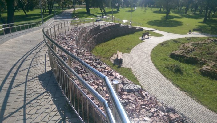 После сборки на месте модули панели заполняются каменным материалом. При формировании конструкций модули Системы Террамеш располагаются горизонтальными слоями. Шаг армирования определяется в соответствии с проектом для обеспечения устойчивости массивов грунта.