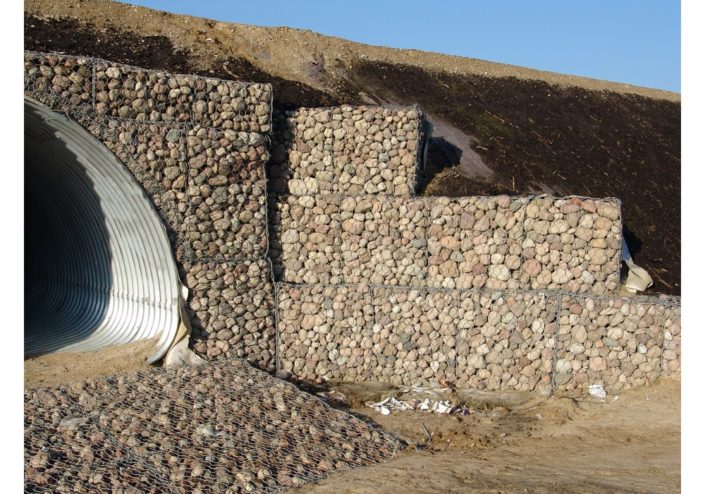 Габионные конструкции изготавливаются из высококачественной стальной проволоки с прочным гальваническим защитным покрытием, обеспечивающим долговременную защиту от коррозии. Для габионов, которые используются в более агрессивных средах, или в случаях, когда необходимо обеспечить увеличенный срок службы сооружения, также применяется дополнительное защитное полимерное покрытие – ПВХ (поливинилхлорид).