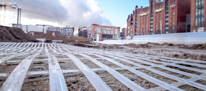 • геосинтетические опоры используются для вертикального дренажа в дорожных и железнодорожных узлах;